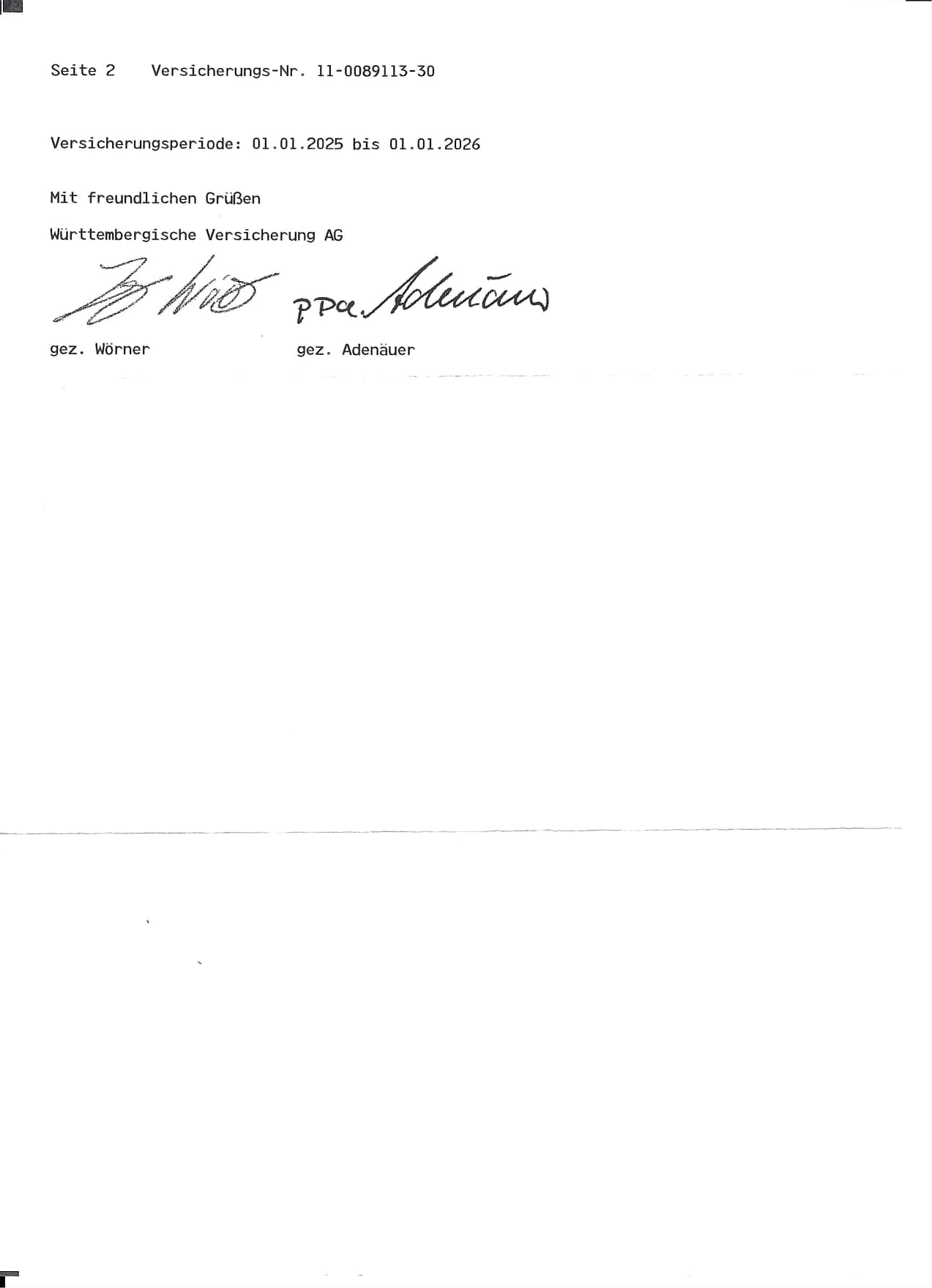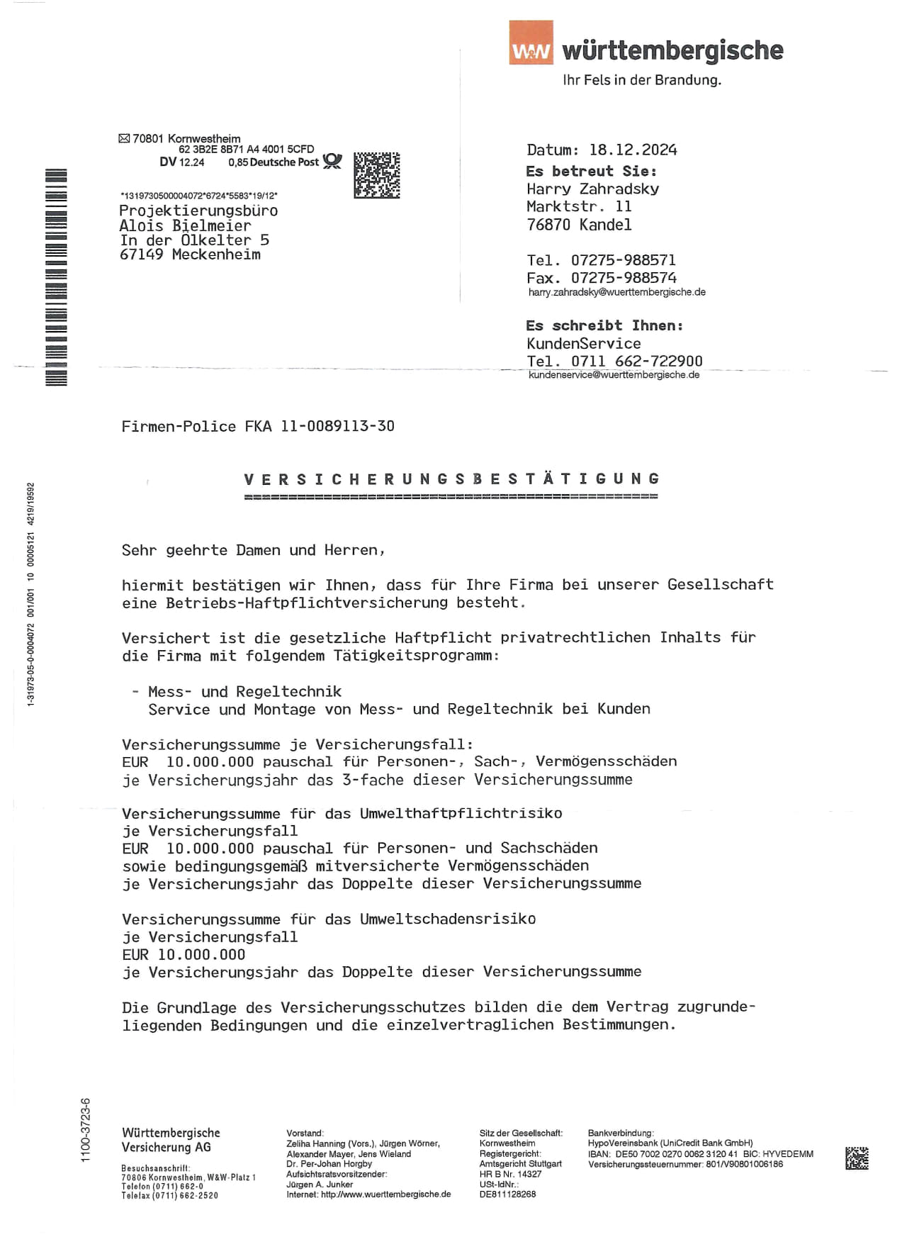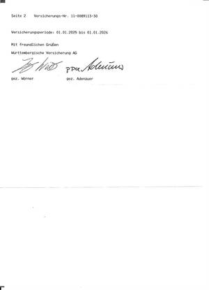 Wird im Bedarfsfall aktuell bei Versicherung angefordert und nachgereicht.